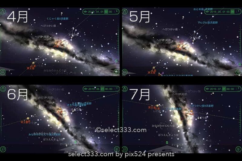 4月〜7月の天の川の見え方