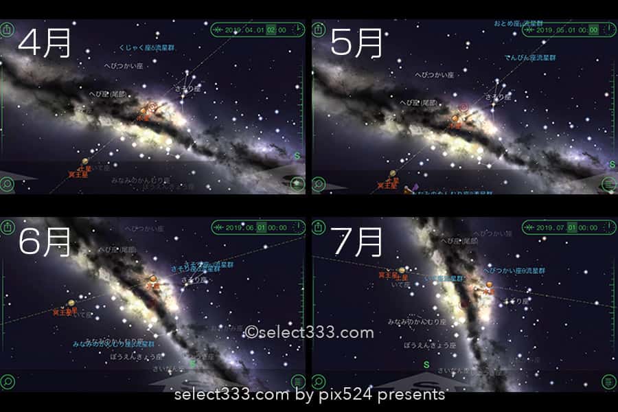 4月〜7月の天の川の見え方